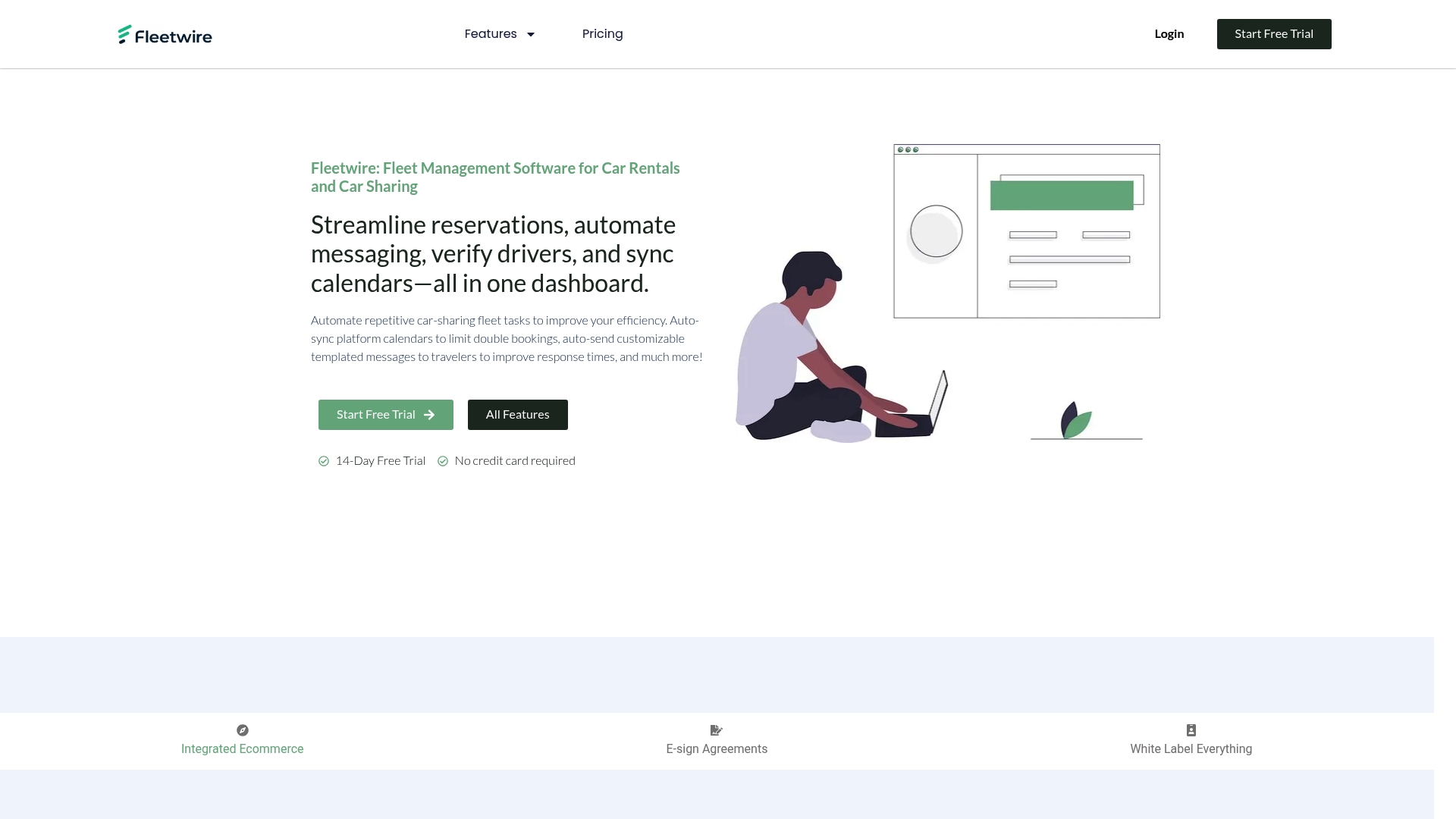 Fleetwire centers on Online Reservations, eSign Agreements, and Online Payments while offering calendar synchronization and fleet visibility for managers. The platform also provides integrations with Stripe, Square, Zapier, and API access, plus branding customization and an integrated ecommerce storefront.